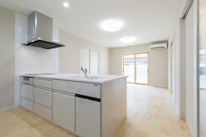 高砂市伊保崎にてF様邸の建て替え工事が完成いたしました。以前の建物は、段差は多く、収納は少ない、夏は暑く、冬は寒いといった状態でしたので、この度の建築計画ではそれらの問題解決と、動線を考慮した間取りとなるように工夫されております。寝室では収納と部屋を完全に区切るのではなく、扉は付けず壁だけを設けることで、使い勝手を良くし、寝室と洗面・浴室が短い動線で行き来できるようになっております。また長期優良住宅・高耐震住宅(耐震等級3)として、省エネ性・安全性にも優れ、F様に永く快適に暮らしていただける建物です。